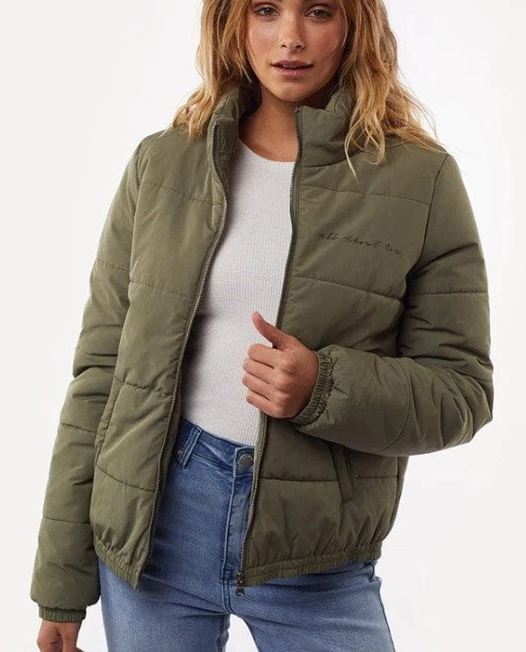 Mila Puffer Jacket is your essential Autumn puffer, with horizontal quilting, elasticated hem and cuffs and zip through front it is a go to for any occasion.