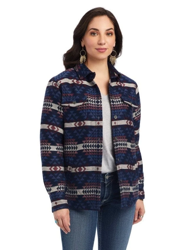 Wear-tested by riders, this shirt jacket features a lightweight lining that locks in the warmth and Southwest-inspired print as a stylish addition.