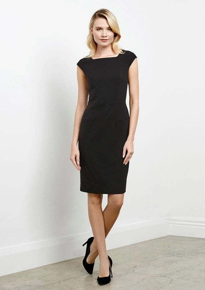 Classic shift dress style with figure flattering angled seam detail