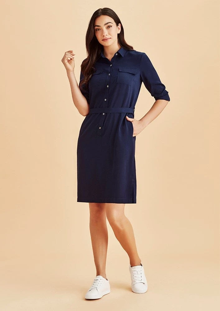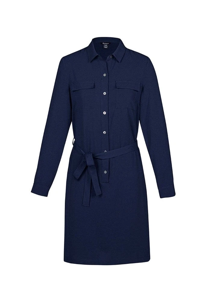 Both office and off-duty dress codes are covered with our chic shirt dress. With side pockets, secret bust button, detachable belt and side splits.