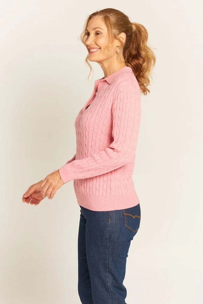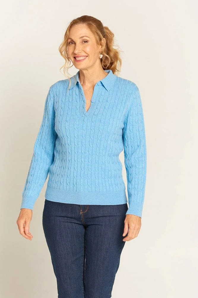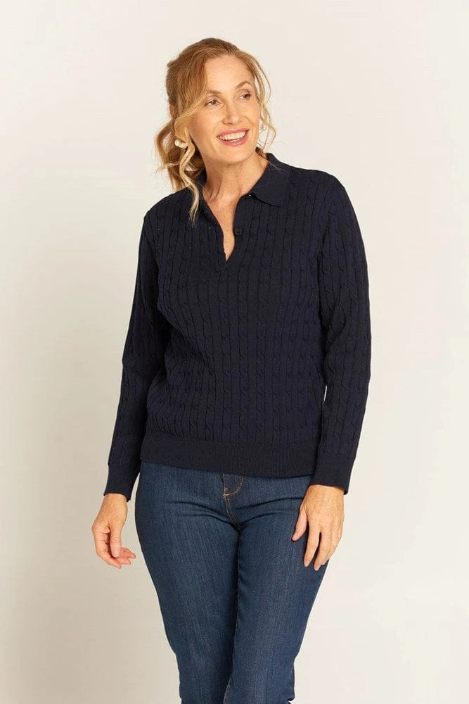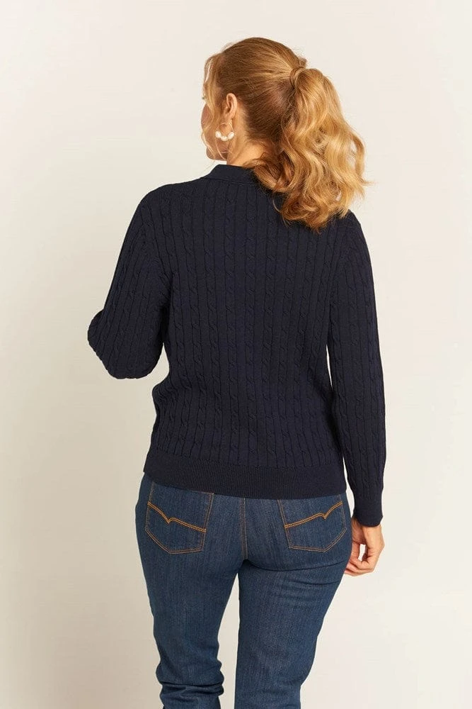 Everyday knitwear thats luxury to touch and easy to wash. This lightweight preppy knit classic features a shirt neckline with cotton collar and cable knit embroidery. Our Cable Jumper is a classic fit that is true to size.