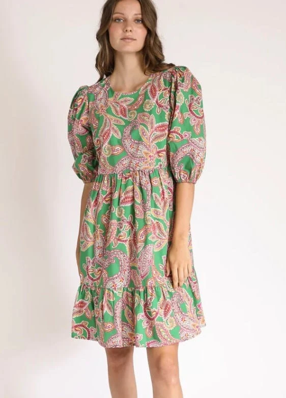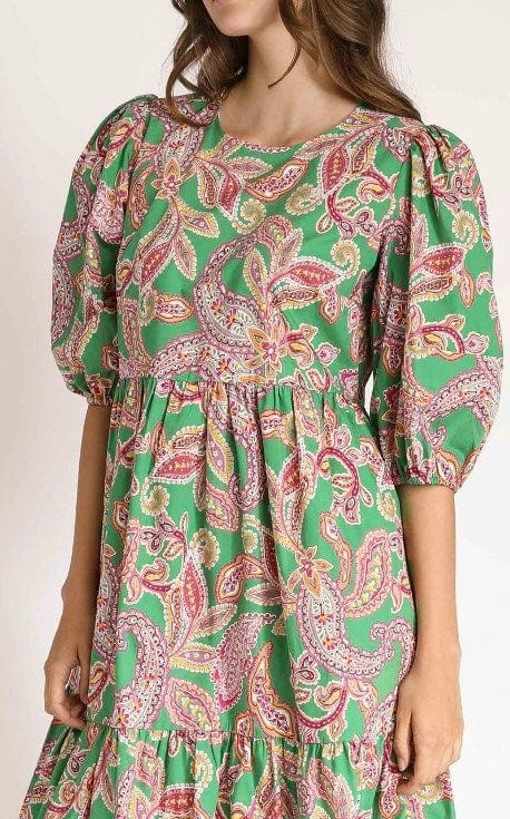 The Francis dress by Kachel is a lightweight summer dress with cute puff sleeves in a gorgeous Kachel print. With a round neckline and a tiered skirt design.