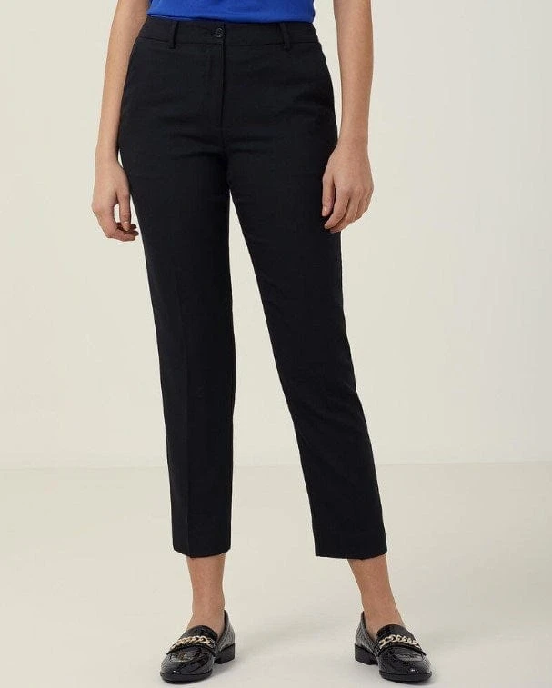 With a streamlined cut and high quality fabrication, the Slimline Pant works perfectly in a myriad of office environments. A tapered leg and ankle-grazing hemline gives the style a modern look, while belt loops and side pockets keep things corporate. It’s cut from our wool-blend Dobby Stretch fabric that boasts inbuilt stretch for extra comfort and room to move. The subtly textured finish adds interest to the chic black tone. Wear yours with heels and a sharp shirt for an elevated result, or just add flats and an easy tee for a dressed-down vibe.