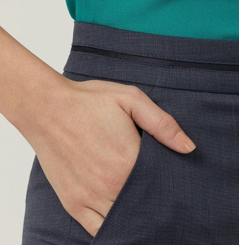 The Slimline Detail Pant will give your workday wardrobe an instant upgrade. The style combines a modern, narrow leg and cropped 7/8 hemline for a streamlined shape. Design details such as statement seams up the back of each leg and contrast waistband detailing further elevate the look. You’ll love the luxurious wool-rich Sharkskin fabric, which offers a hint of Lycra® for extra stretch and comfort. Style with a soft blouse tucked in to showcase the silhouette.
