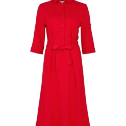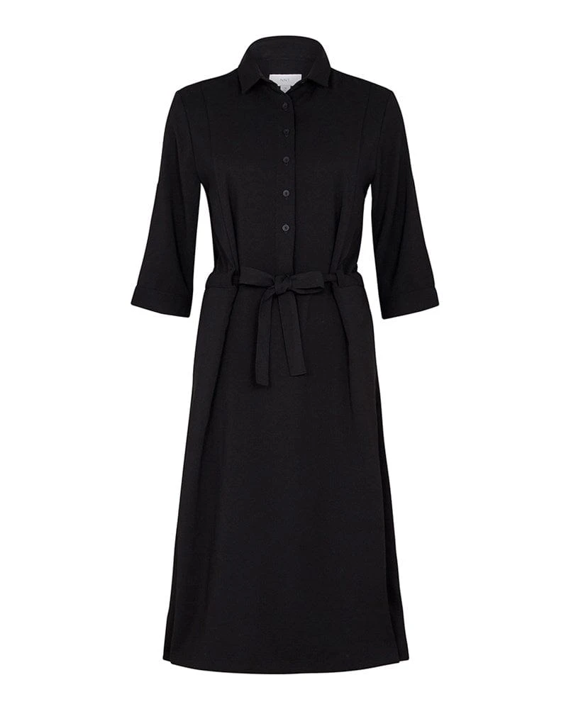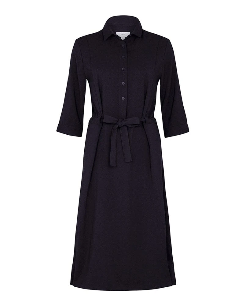 Modern take on a classic shirt dress, this key wardrobe piece is so easy and versatile not only to wear, but also to care for. Buttoning through to the waist, with the option to wear relaxed or cinched in with the cleverly concealed tie belt, this dress will accentuate figures across all sizes and shapes. The full skirt and extended hemline relects the modern trends, while the adjustable sleeve can be rolled short or worn elbow length. Side pockets provide function and the clean lines provide shaping and tailoring.