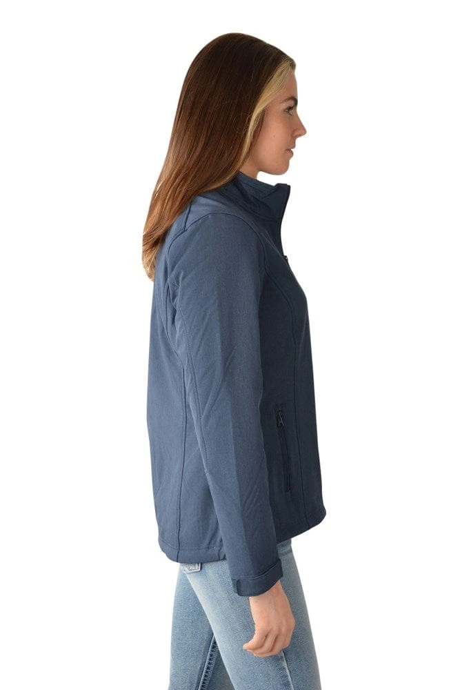 Textured marle jacket with bonded aztec printed polar fleece lining, waterproof softshell fabric, weather-resistant rating 6000, logo embroidery on chest, side zip pockets, chest welt pocket with zip, adjustable sleeve cuffs, adjustable toggle and elastic in hem to keep warmth in, curved longer back hem, Pure Western logo pip on side seam