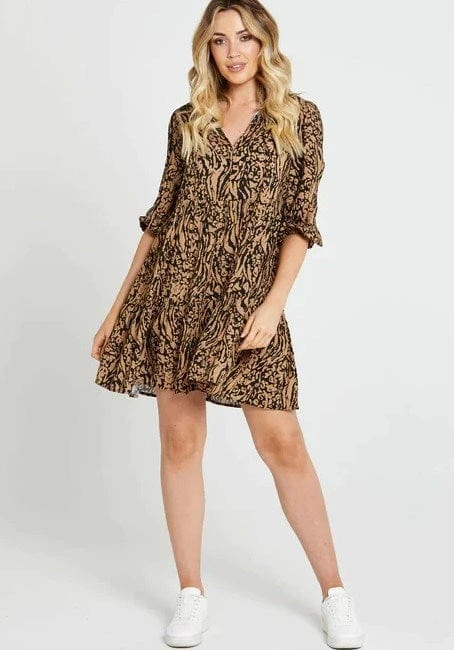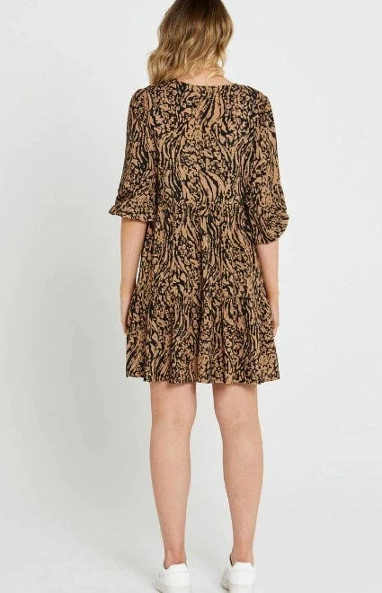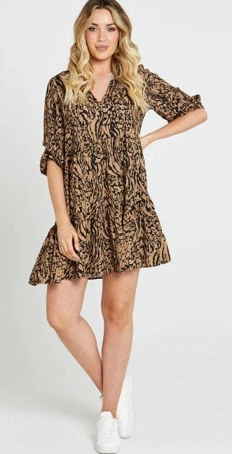 Get ready to twirl in the Luna Tiered Oversized Dress. This mini dress is the perfect combination of cute and sassy, with an oversized fit that’s both comfortable and stylish. Available in blue or brown animal print, you’ll be feeling like a fierce jungle queen in no time. The tiered skirt adds a touch of flirty fun to your look, while the neck tie brings some retro charm to the table. So whether you’re dancing with your girls or just feeling fabulous, the Luna Tiered Oversized Dress has got you covered.