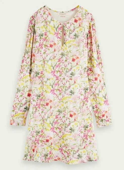 Scotch & Soda Womens Ruffle Hem Allover Printed Long Sleeved Mini Dress