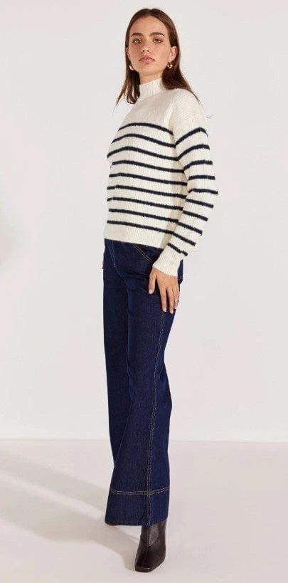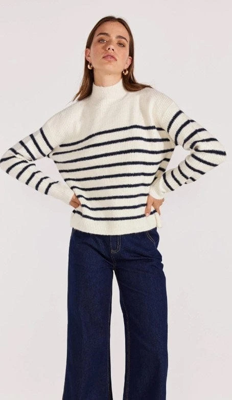Cozy white with navy stripe knit jumper