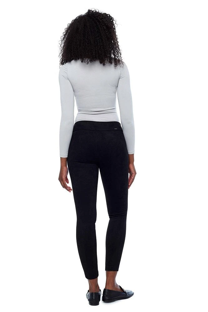 With a pared-down sophistication and minimal sensibility, this rich faux suede pant is a sumptuous addition to your fall fashion wardrobe. Buttery soft and impeccably cut, it’s just as comfortable as your favorite leggings but much more chic. Featuring a pull-on elastic waistband with superior tummy control technology, the a fit is comfortable, super-flattering, and easy to wear. Classic with a sultry edge, this lush beauty goes with literally everything. Try it with a plaid blazer and stacked loafer for a classic office ensemble, pair with a slinky statement blouse and tonal heels for a dinner date, or style with a roomy knit and western boots for a casually-cool look.