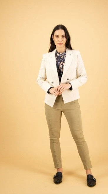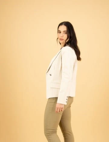 • Vassalli Shaped Lined Blazer with Button Cuff Detail in Ivory